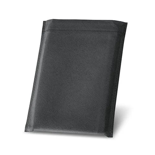 Agenda B5 em c. sintético. Fecho magnético com peça metálica brilhante. Com suporte para esferográfica. Fornecida com bolsa de non-woven. Esferográfica inclusa. 175 x 245 mm | Bolsa: 220 x 270 mm