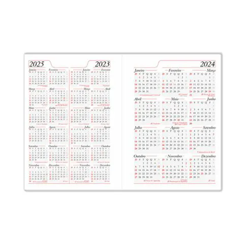 Capa: Couro Sintético 0,6mm – Miolo de Agenda Diária – 2×2 Cores – 344 páginas – Off-set 63g com Mapa 4×4 Cores – Índice Telefônico – Planejamento – Formato 145x200mm.
