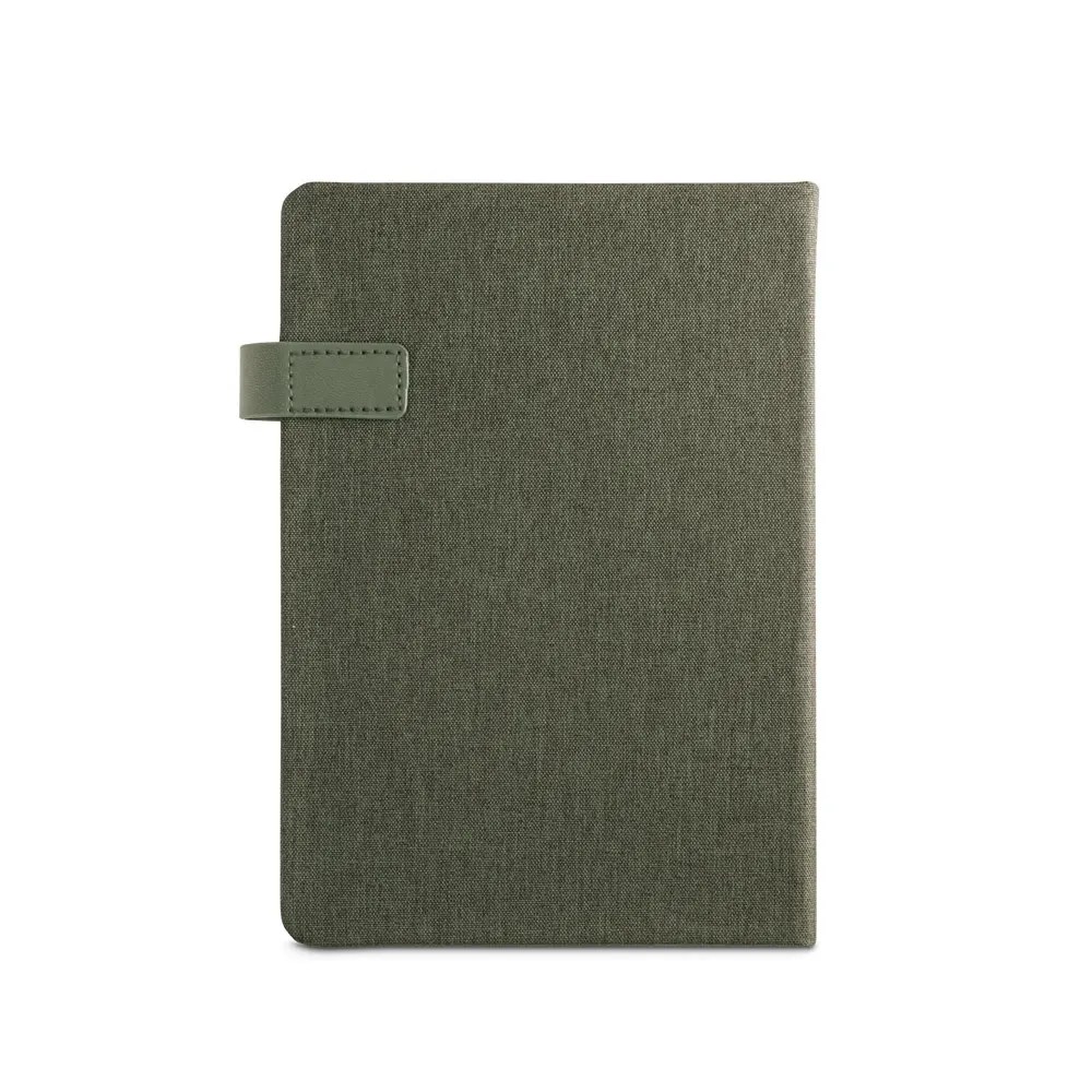 Agenda A5 em rPET. Agenda com presilha em PU com fecho magnético e suporte para esferográfica (não inclusa). Fornecida com bolsa de non-woven. 148 x 210 mm | Bolsa: 205 x 250 mm