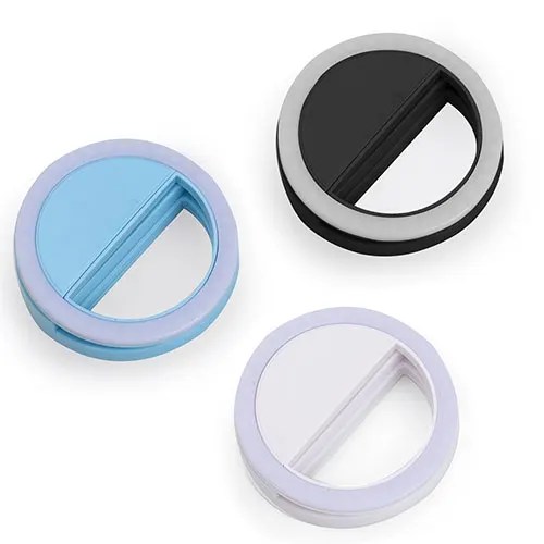 Descrição: Anel de iluminação para celular, utilizado para fotos em formato selfie. “Ring light” plástico no formato “presilha” para encaixe, possui três estágios de iluminação acionados pelo botão superior. Utiliza duas pilhas tamanho AAA(não acompanha).