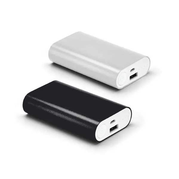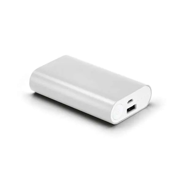 Bateria Portátil Alumínio. Bateria de lítio. Capacidade: 5.200 mAh. Tempo de vida ≥ 500 ciclos. Com entrada/saída 5V/1A. Incluso cabo USB/micro-USB para carregar a bateria. 91 x 56 x 24 mm