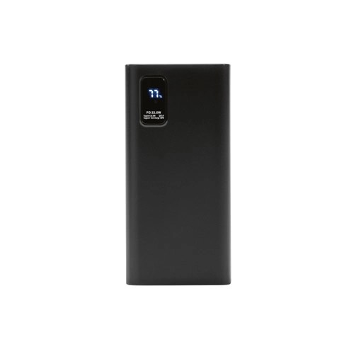 Bateria portátil em ABS 100% reciclado. Bateria em lítio com capacidade de 30.000 mAh e tempo de vida ≥ 300 ciclos. Possui entrada micro-USB e USB-C, 4 saídas USB-A e uma saída USB-C. A parte frontal tem uma tela de LED com informações do nível de carga da bateria. Incluso cabo USB-C para carregamento da bateria. Fornecida em caixa presente de papel kraft. 143 x 69 x 41 mm | Caixa: 75 x 150 x 45 mm