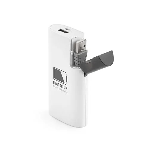 Bateria portátil. ABS. Bateria polímero de lítio. Capacidade: 4.000 mAh. Tempo de vida ≥ 500 ciclos. Entrada 5V/1A e saída 5V/1A. 1 porta USB. Incluso cabo USB/micro USB para carregar a bateria. Fornecido em caixa presente. 102 x 52 x 22 mm