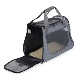 Descrição: Bolsa para transporte de pets, confeccionada em tecido Oxford com bolso lateral. Seu tapete dupla face, com uma camada aveludada, foi projetado para proporcionar o máximo conforto ao pet. Equipada com telas respiráveis em nylon, esta bolsa apresenta uma abertura superior e duas aberturas laterais com faixas refletivas, sendo uma delas com abertura completa, permitindo uma experiência de transporte arejada, com entrada e saída prática para o pet. As alças de mão, estrategicamente equipadas com suporte para junção, garantem conforto durante o transporte manual, enquanto a alça transversal proporciona um transporte ergonômico com distribuição mais eficiente do peso.