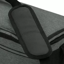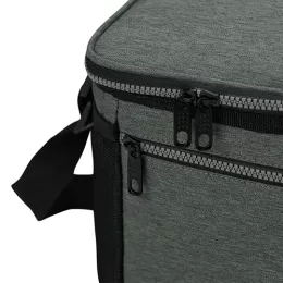 Descrição: Bolsa térmica de nylon 10 litros com dois compartimentos, sendo o principal com revestimento térmico e bolso telado para utensílios. Possui bolsos laterais em malha e alça transversal com apoio para ombro.