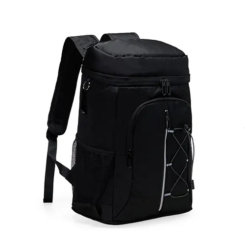 Descrição: Mais que uma bolsa térmica, ela possui capacidade de 32 litros e alças que permitem carregá-la nas costas. Feita em oxford, é resistente à água e conta com quatro compartimentos: um com revestimento térmico em PEVA atóxico e costura soldada antivazamento, perfeito para manter os alimentos na temperatura ideal ou armazenar gelo, deixando as bebidas sempre geladinhas; outro para frutas, iogurtes e saladas; e dois na parte frontal com zíper, sendo um deles com faixa refletiva e elástico ajustável. Nas laterais, bolsos de tela oferecem fácil acesso a garrafas e outros itens. Para completar, inclui um chaveiro abridor de garrafas, ideal para facilitar ainda mais o momento de lazer.