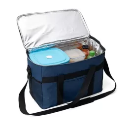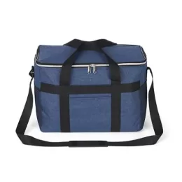 Descrição: Bolsa térmica 33 litros. Contém bolso frontal, bolsos laterais telados, alça de mão em nylon e alça transversal regulável (não removível) com apoio para ombro.
