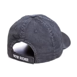 Boné dad hat aba curva, confeccionado em sarja com lavagem marmorizado, frontal em bordado, ajustador em velcro.