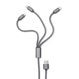 Descrição: Cabo de dados 3 em 1 com revestimento em nylon, contém as saídas USB: Tipo-C, Lightning e V8.