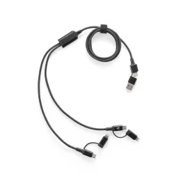 Cabo super-rápido 6 em 1 em alumínio 20% reciclado e PET 4% reciclado. Permite carregamento super-rápido de 60W via USB-C e transferência de dados. Apresenta uma entrada dupla USB-A/USB-C e duas saídas com duas portas USB-C que podem ser utilizadas em simultâneo. Em uma das extremidades tem uma saída compatível com lightning com carregamento rápido de 27W e na outra extremidade uma saída dupla micro-USB e compatível com ligthning de 10W. Fornecido em caixa presente de papel kraft reciclado. 1000 x 25 mm | Caixa: 155 x 40 x 30 mm