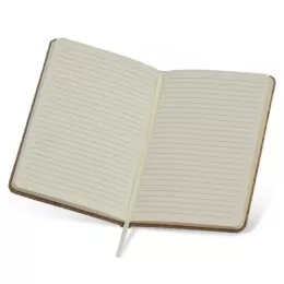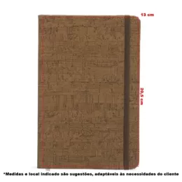 Descrição: Caderneta em cortiça, possui marca página em cetim e elástico para lacre. Contém aproximadamente 80 folhas marfim pautadas.