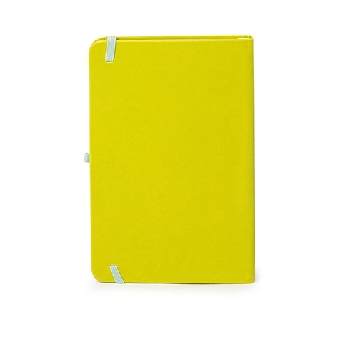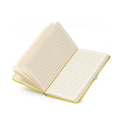 Descrição: Caderneta capa dura em couro sintético com fecho magnético, placa metálica personalizável, além de marca-página em fita de cetim e aproximadamente 96 folhas brancas pautadas.