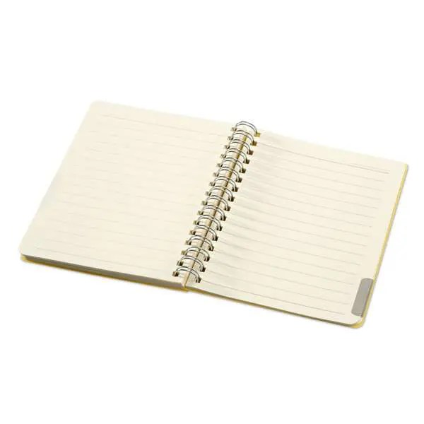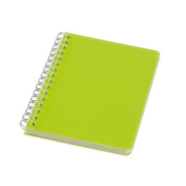 Caderno PP com 64 folhas Pautadas cor creme. 103 x 140 mm