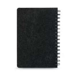Capa em feltro 100% reciclado, com caderno A5 no interior. O caderno removível contém a capa em papel 100% reciclado, bem como 160 páginas pautadas (70 g/m²) cor de marfim também em papel 100% reciclado. 150 x 210 mm