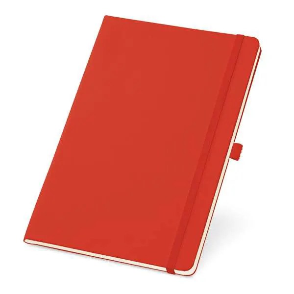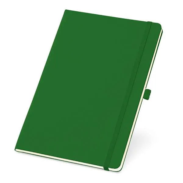 Caderno Capa Dura com Porta Esferográfica, bolso interior e 80 folhas não pautadas cor marfim. 137 x 210 mm