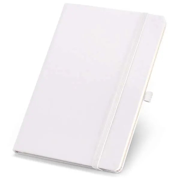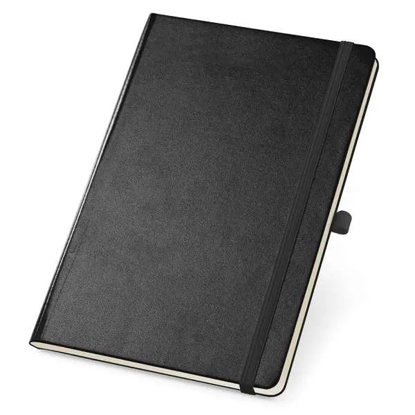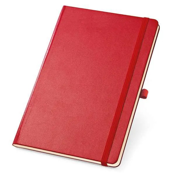 Caderno Capa Dura. Com porta esferográfica, bolso interior e 80 folhas não pautadas cor marfim. 97 x 145 mm