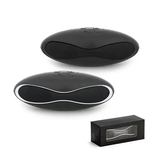 Caixa de som com microfone. ABS. Acabamento emborrachado. Com bluetooth e ligação stereo 3,5 mm. Com 3W/4Ω. Autonomia até 3 h. Função para atender chamadas, controle de volume e conexão à playlist do dispositivo móvel. Incluso cabo USB para carregar.
