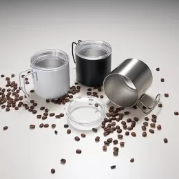 Descrição: Caneca Isotérmica 350ml parede dupla em Inox, com pegador de inox, contém tampa transparente com compartimento para beber.