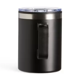 Descrição: Caneca plástica com capacidade de até 375ml e revestimento externo em inox que reduz o contato direto com a temperatura dos líquidos. Conta com tampa plástica com bocal e trava de segurança, além de base emborrachada antiderrapante.