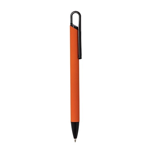 Descrição: Caneta metálica com acabamento similar à borracha, carga esferográfica azul 1.0mm e acionamento por clique.