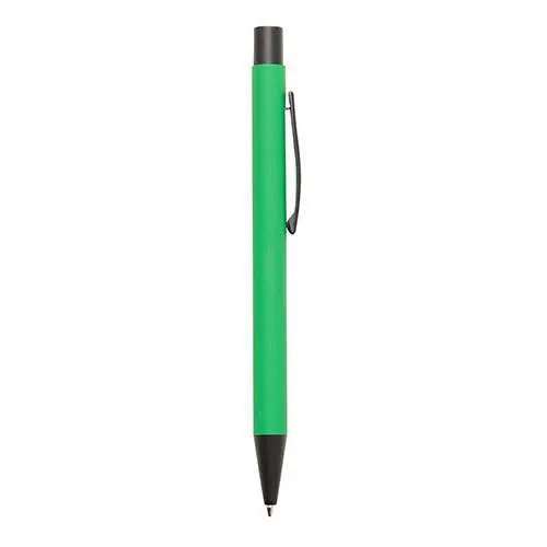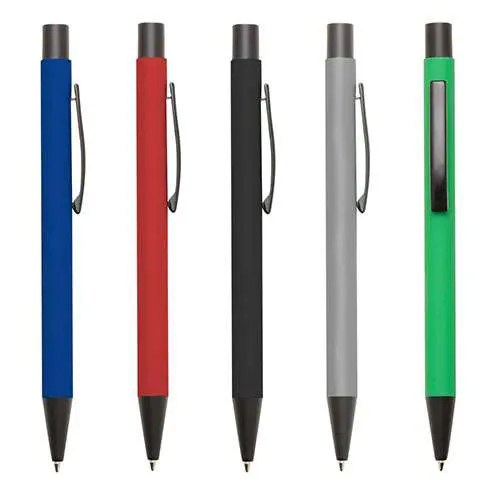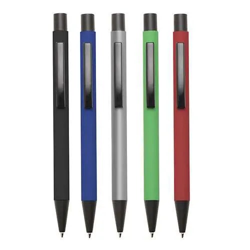 Descrição: Caneta metal com pintura fosca colorida, acionador, clip e ponteira na cor preta. Aciona por clique.