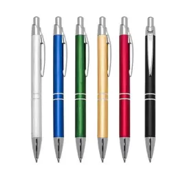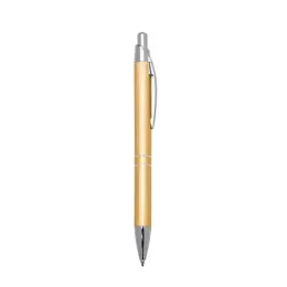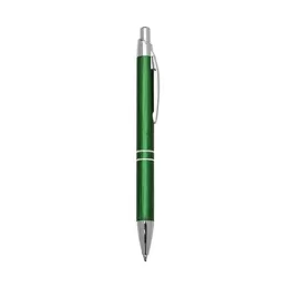Caneta metal inteira colorida com detalhes prata, pintura tipo escovada. Clip metal e dois anéis centrais prata. Aciona por clique.