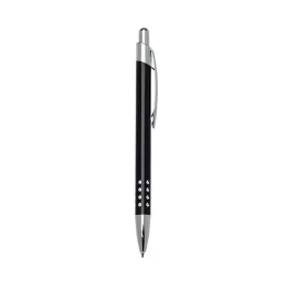 Caneta metal inteira colorida com detalhes prata. Clip metal e possui vinte e quatro strass na parte inferior. Aciona por clique.