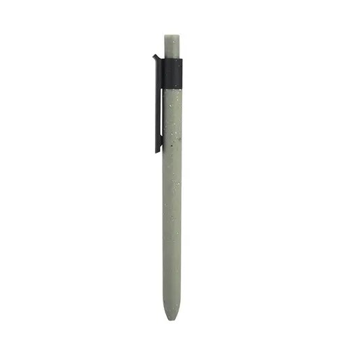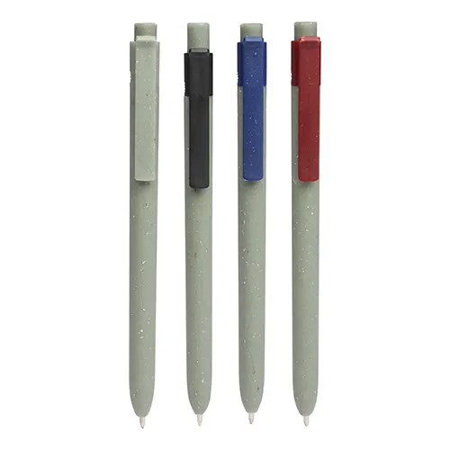 Caneta produzida com corpo de caixa de leite reciclada, detalhe em plástico PE.