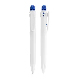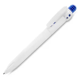 Caneta plástica esferográfica retrátil com grip, escrita azul e disponível em diversas cores. Confortável, funcional e ideal para ações promocionais.