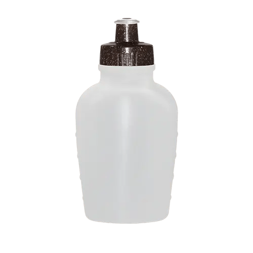 Cantil com corpo de Plástico Premium (PE) resistente e flexível, tampa rosqueável feita com 50% de Fibra Natural de Coco ou Madeira e 50% Plástico Premium (PP) com bico em PVC cristal, todos atóxicos. Tampas ecossustentáveis com acabamento e vedação impecável. Capacidade de 500 ml.