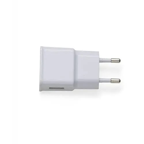 Descrição: Carregador tomada plástico branco. Para utilizar basta conectar cabo USB(não acompanha) no adaptador e ligar à energia, compatível com todos aparelhos. Entrada 100-240V, frequência 50-60Hz e saída 5V-2A. Parte frontal lisa e parte traseira com especificações técnicas.