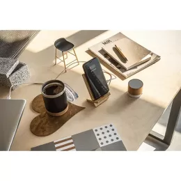 Carregador wireless e suporte em bambu para smartphone. Possui uma potência de carregamento sem fios de 10W. Compatível com smartphones com tecnologia de carregamento sem fios. O suporte em bambu consiste em 2 partes desmontadas. Incluso cabo de 1 metro. Fornecido em caixa presente de papel kraft. 140 x 80 x 8 mm