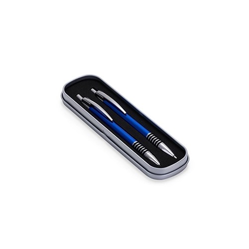 Descrição: Com este conjunto de caneta e lapiseira metálicas, escrever será uma experiência ainda mais sofisticada e elegante. O estojo em metal que as acomoda, possui revestimento em espuma para evitar riscos. A caneta possui carga esferográfica azul de 1.0mm, com acionamento por clique, já a lapiseira possui grafite 0.7mm.