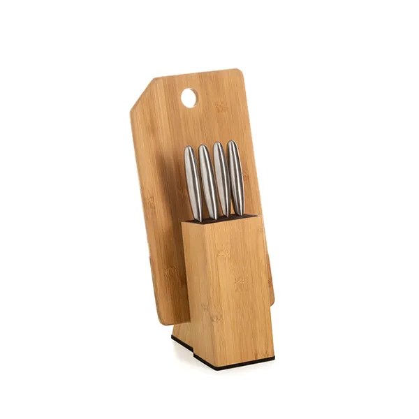 Conjunto Queijo C/ Cepo Em Bambu / Inox 5 Pçs SMKT-90162