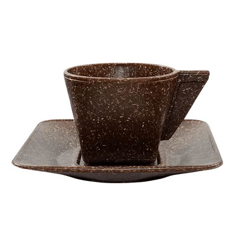 Xícara com Pires feita com 50% de Fibra de Coco ou Fibra de Madeira de reflorestamento. Design exclusivo do Grupo BB, esse produto é uma novidade no mercado de brinde em plástico. É resistente a microondas e a máquina de lavar. Produto premiado 2 vezes nos Estados Unidos como verdadeiramente sustentável!