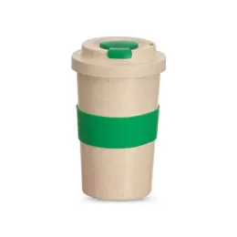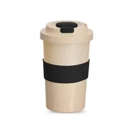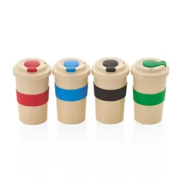 Copo em fibra de bambu com pegador e proteção do bico em silicone, capacidade 450ml. Composição: 30% de fibra de bambu e 70% de PP.