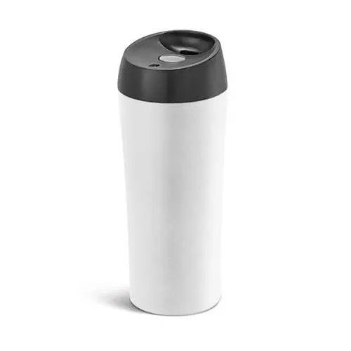 Copo para viagem. Aço inox e PP. Com parede dupla, tampa com sistema anti derrame e antideslizante na base. Capacidade até 470 ml. Food grade. Caixa branca 94655 vendida opcionalmente. ø80 x 198 mm | Caixa: 82 x 202 x 82 mm
