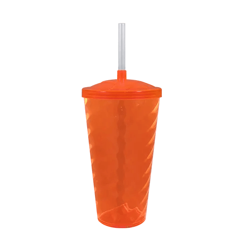 Capacidade para 600ml. Design moderno e acabamento impecável, o Copo Twist com Tampa e Canudo é feito em Plástico Premium (PS), atóxico, com parede de 2mm de espessura que garante um produto robusto de alta qualidade, transparência impecável e cores vibrantes.