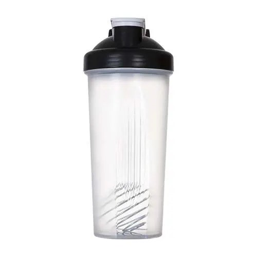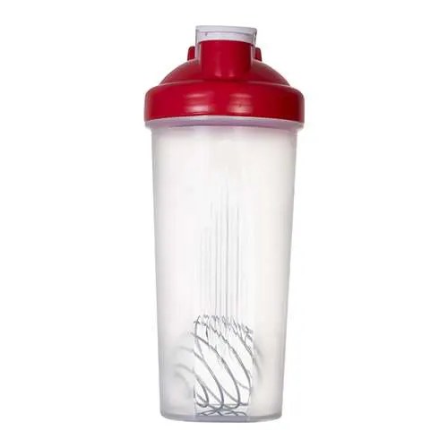 Coqueteleira Shake 600ml plástica. Possui medidas em ml e oz, detalhes em relevo nas laterais e mola para misturar. Tampa de rosca e trava na própria tampa, basta levantar para beber.