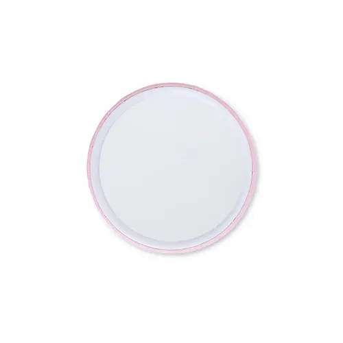 Espelho plástico sem aumento com verso de acabamento brilhante e película de ferro.