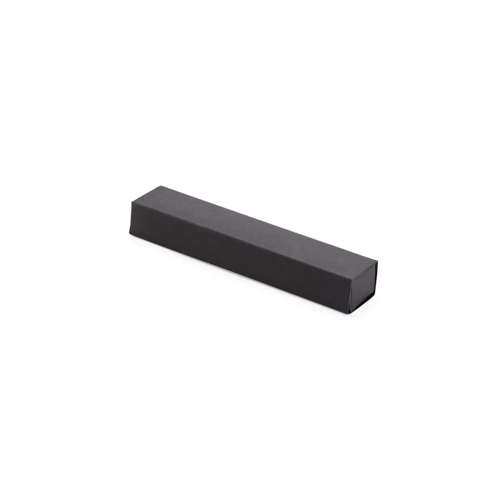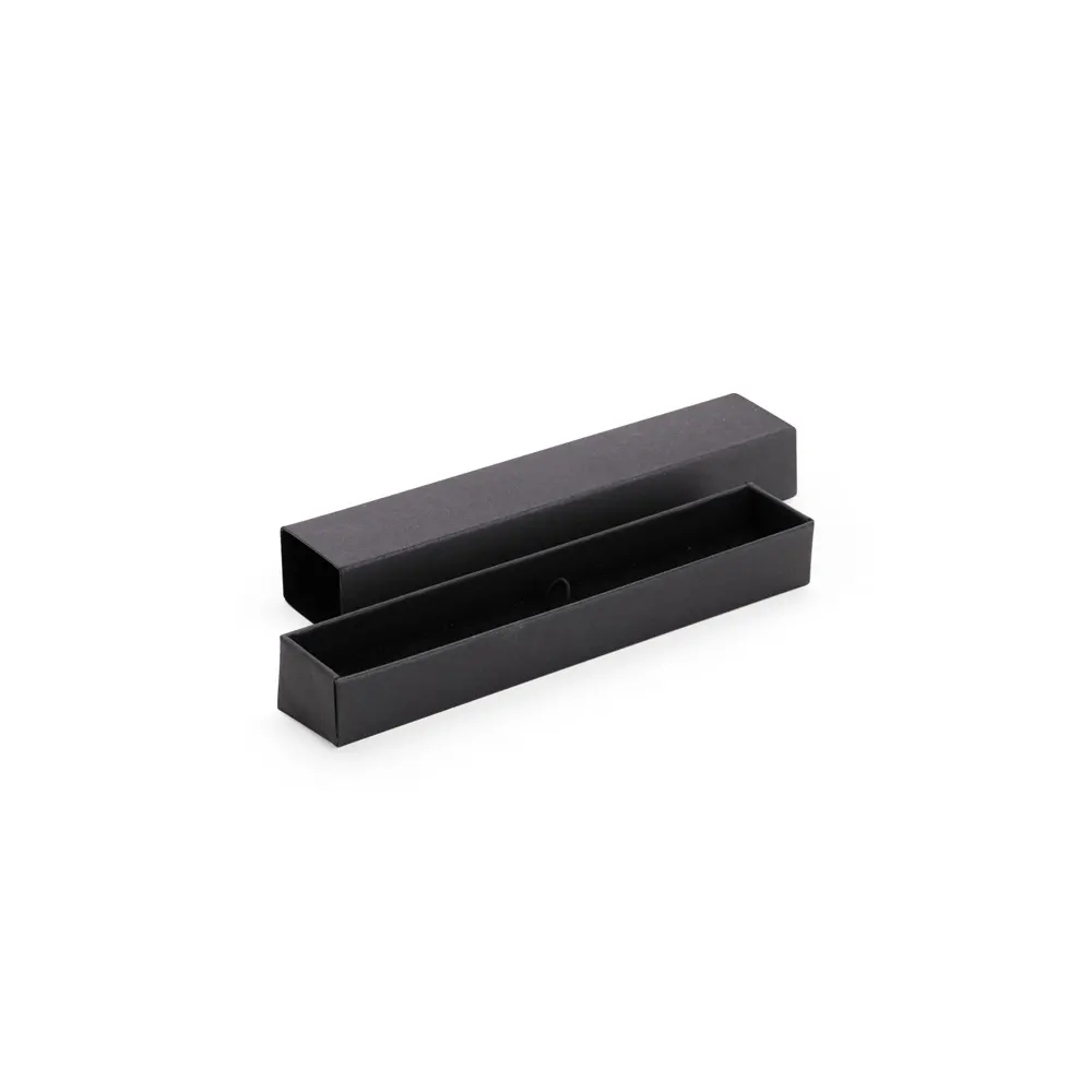 Descrição: Estojo em papelão com abertura estilo gaveta e berço aveludado e elástico para fixar uma caneta.