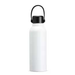 Descrição: Garrafa de alumínio com capacidade de 800ml. Leve e resistente, a garrafa possui tampa plástica rosqueável com alça integrada para facilitar o transporte.