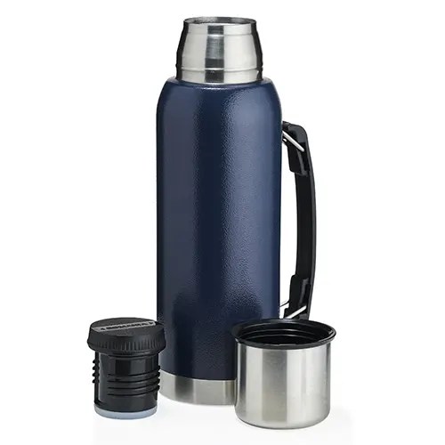 Descrição: Garrafa térmica de inox livre de BPA com capacidade de 1 litro. Contém alça para transporte e pintura texturizada.