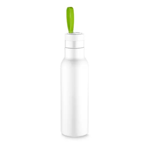 Garrafa térmica em aço inox fosca com parede dupla isolada a vácuo, com capacidade de até 500ml com alça emborrachada. Tampa rosqueável e anel de silicone para vedação. Conserva líquido quente até 12 horas e frio ate 18 horas. Portátil e durável, muito adequado para viagens, atividades ao ar livre, carros, escritórios, casas, escolas, piqueniques, yoga, caminhadas, acampar, etc.