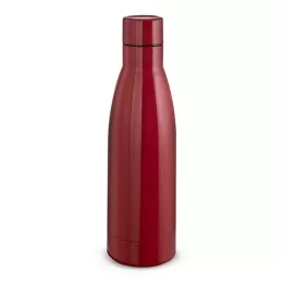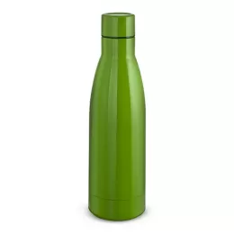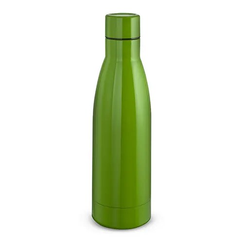 Garrafa térmica em aço inox com parede dupla isoladao à vácuo com capacidadede de 450ml. Tampa rosqueável de inox na cor do produto com anel de silicone para vedação. Pintura brilhosa.