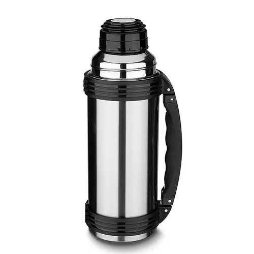 Garrafa térmica em aço inox com parede dupla isolada a vácuo,com capacidade de até 1,2l. Além de garantir a temperatura ideal do líquido por horas, é muito fácil de ser transportada por sua alça lateral que torna o uso desse potente recipiente muito mais simples. Tampa rosqueável e anel de silicone para vedação na tampa.