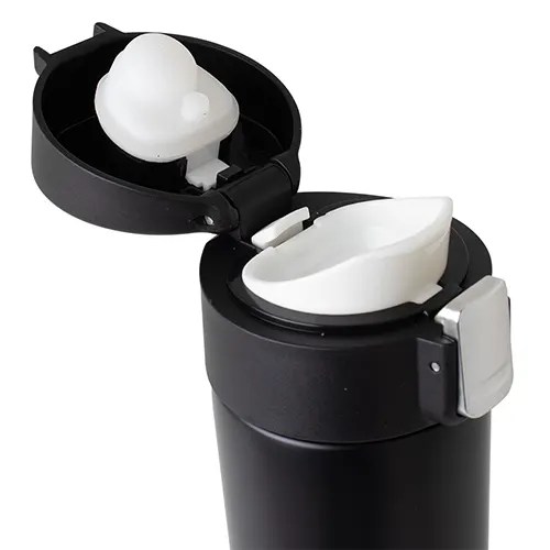 Descrição: Garrafa Térmica 450 ml em inox com sistema de trava. Contém acabamento fosco e revestimento interno em inox, possui tampa plástica fosca com borracha interna para vedação, evitando o vazamento de líquido, botão central para abertura e trava lateral (basta seguir a orientação dos desenhos de cadeados, simulando o travamento/destravamento da tampa).
