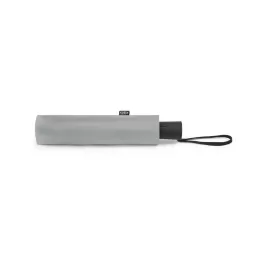 Descrição: Guarda-chuva em poliéster com abertura automática, estrutura metálica com oito varetas e pegador em plástico com alça de nylon fixa na extremidade.