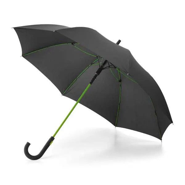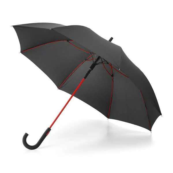 Guarda-chuva Poliéster 190T. Varetas em fibra de vidro e pega revestida a borracha. À prova de vento. Abertura automática. ø1040 mm