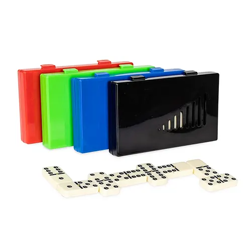 Descrição: Jogo de dominó com 28 peças com detalhes em relevo. Acompanha estojo plástico com travas de fechamento.